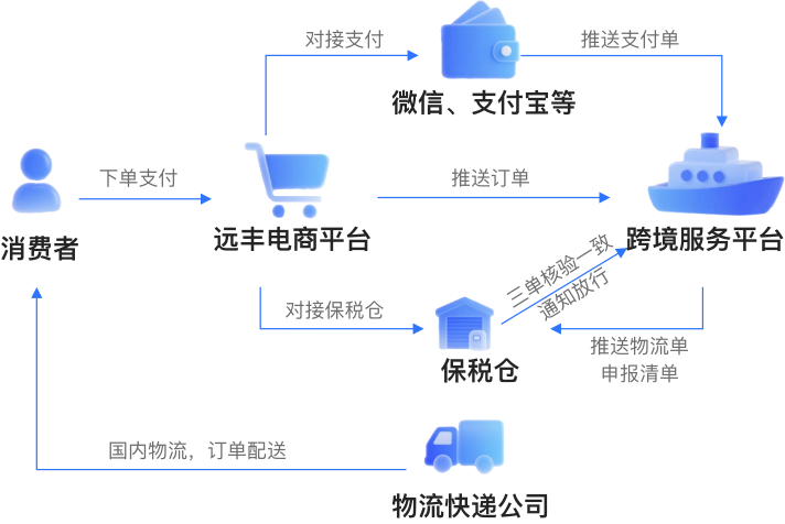 实名认证 免税额度 三单对碰 一键报关 保税仓发货